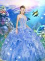 Fantastic Baby Blue Organza Lace Up Quinceanera Dress Sleeveless Floor Length Beading and Ruffles