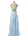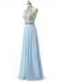 Fantastic Beading Evening Gowns Light Blue Backless Sleeveless Floor Length