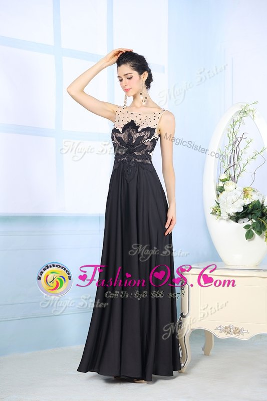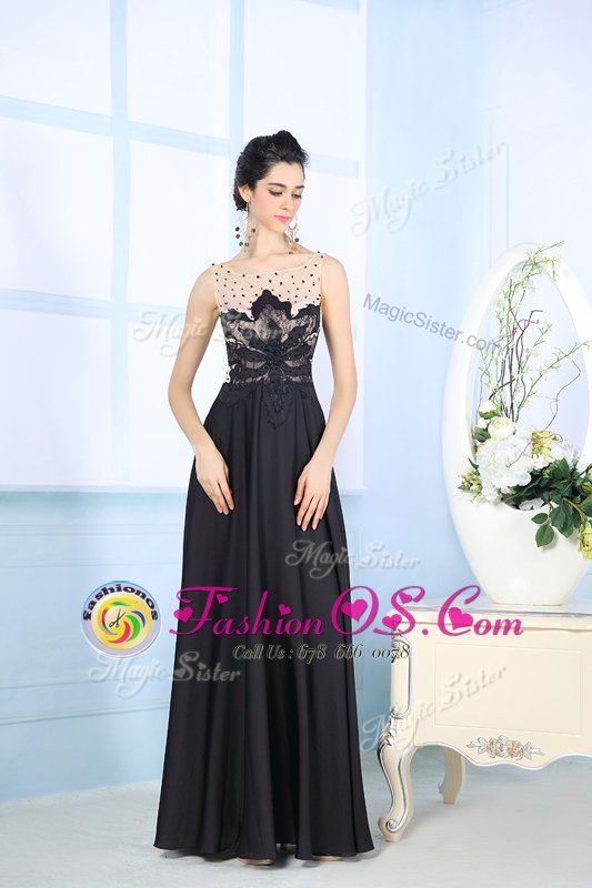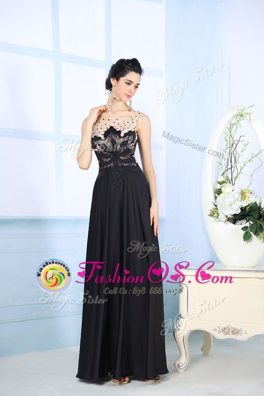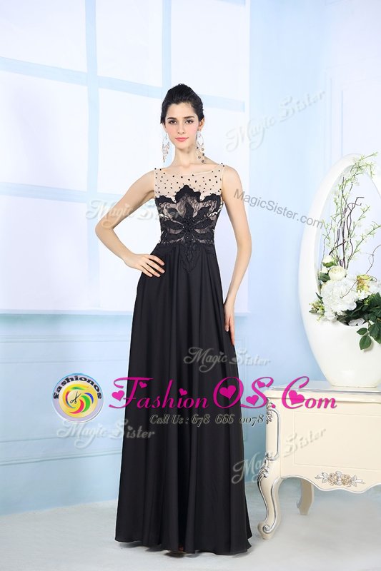 Fantastic Black Scoop Zipper Beading Prom Dresses Sleeveless
