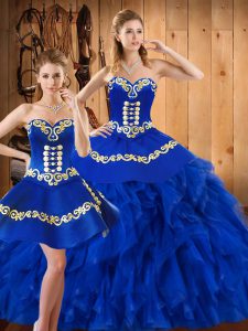 Fantastic Blue Lace Up Quinceanera Dresses Embroidery and Ruffles Sleeveless Floor Length