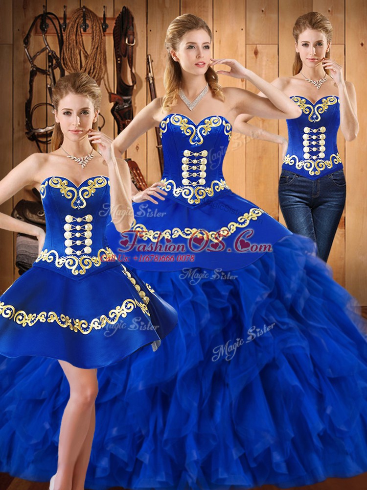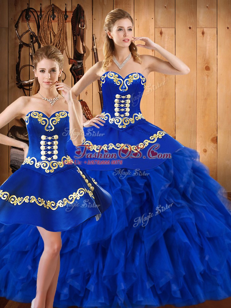 Home >  Quinceanera Dresses >  Detachable Quinceanera Skirts > Fantastic Blue Lace Up Quinceanera Dresses Embroidery and Ruffles Sleeveless Floor Length