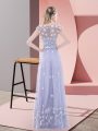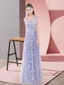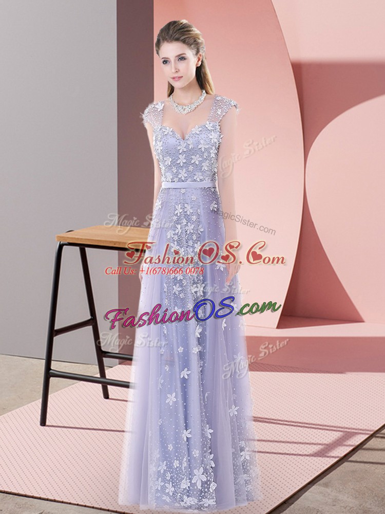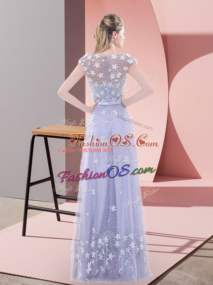 Fantastic Cap Sleeves Floor Length Beading and Appliques Zipper with Lavender