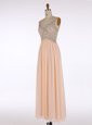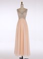 Fantastic Champagne A-line Chiffon V-neck Sleeveless Beading Floor Length Zipper Prom Dresses