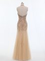 Fantastic Champagne Halter Top Neckline Beading Juniors Evening Dress Sleeveless Backless