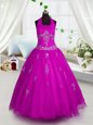 Fantastic Dark Green Ball Gowns Straps Sleeveless Tulle Floor Length Lace Up Beading and Belt Child Pageant Dress