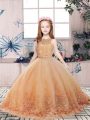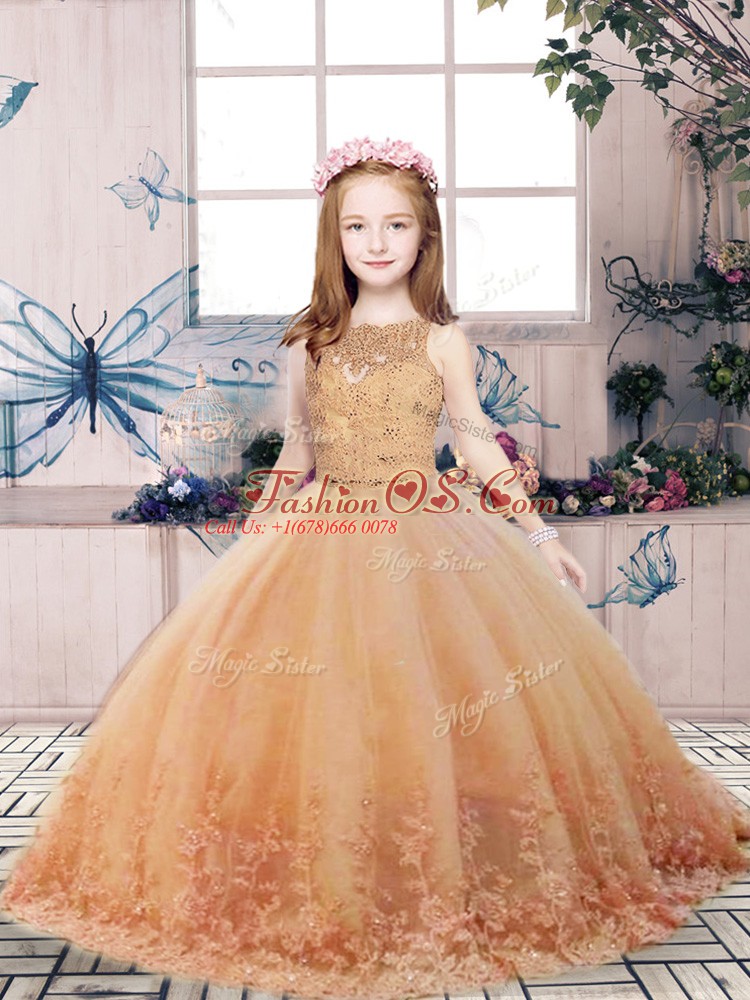 Fantastic Floor Length Gold Kids Formal Wear Scoop Sleeveless Backless