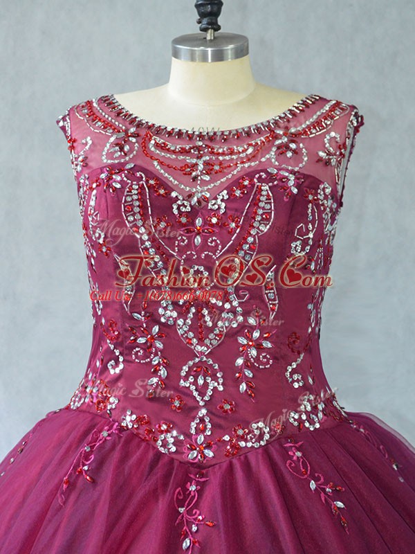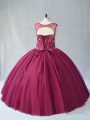 Fantastic Floor Length Lace Up Sweet 16 Dresses Burgundy for Sweet 16 and Quinceanera with Beading