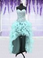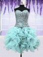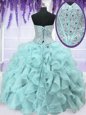 Fantastic Four Piece Sweetheart Sleeveless Quinceanera Gown Floor Length Ruffles and Sequins Light Blue Organza