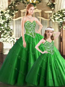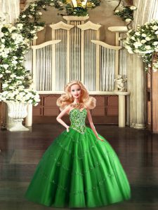 Fantastic Green Sleeveless Floor Length Beading Lace Up Quinceanera Gown