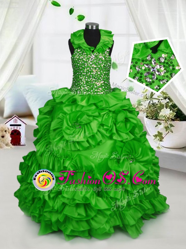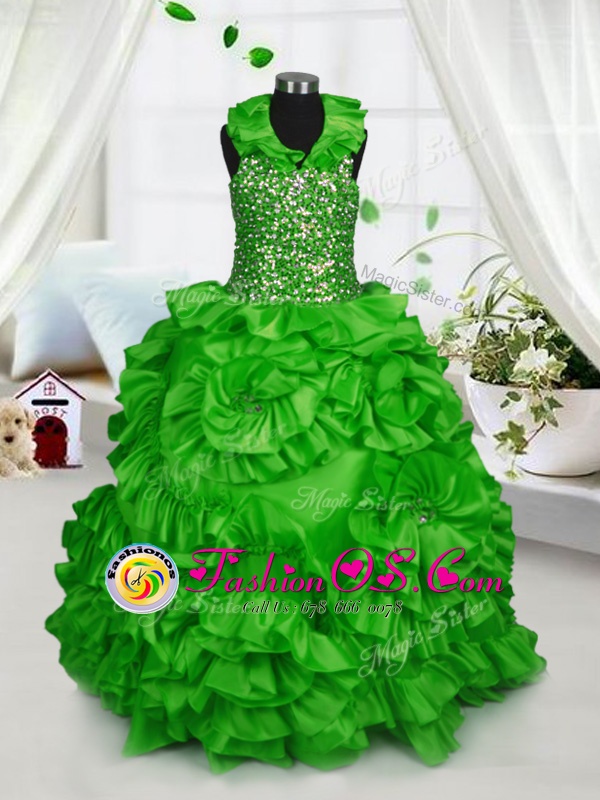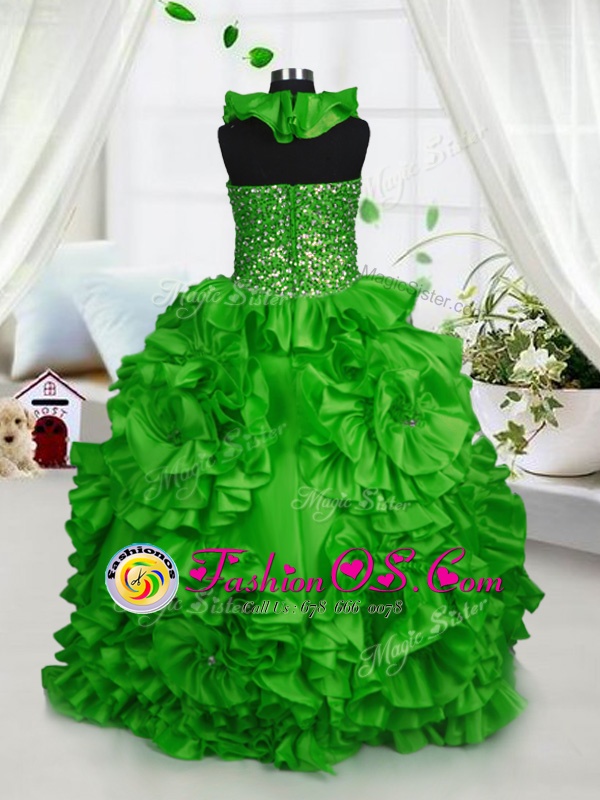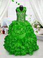 Fantastic Halter Top Beading and Ruffles Little Girl Pageant Gowns Zipper Sleeveless Floor Length