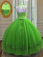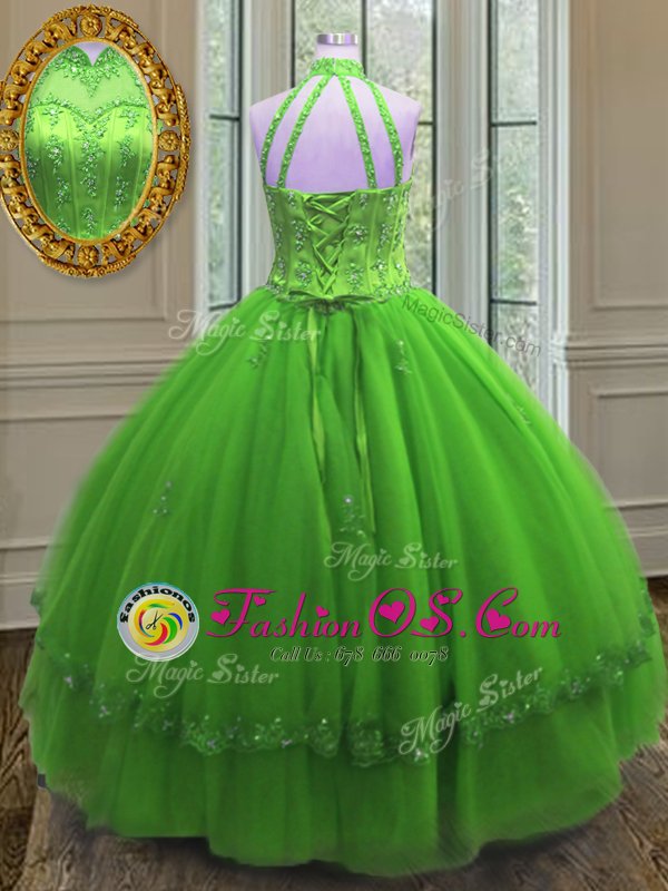 Fantastic Halter Top Floor Length Vestidos de Quinceanera Tulle Sleeveless Beading and Appliques