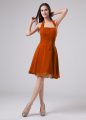 Home >  Special Occasion Dresses >  Elegant Mother of the Bride Dresses > Fantastic Halter Top Sleeveless Mother Of The Bride Dress Knee Length Ruching Orange Chiffon
