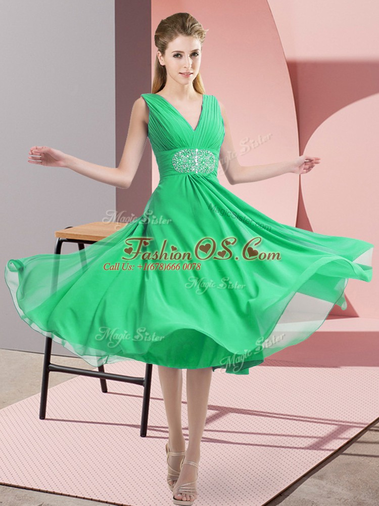 Fantastic Knee Length Turquoise Dama Dress V-neck Sleeveless Side Zipper