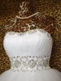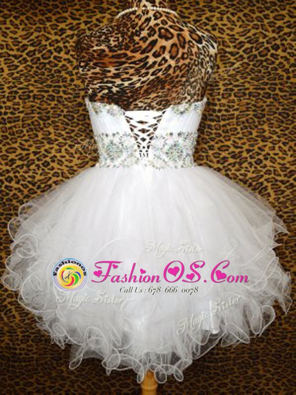 Fantastic Knee Length White Prom Party Dress Strapless Sleeveless Lace Up