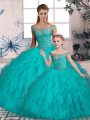 Fantastic Lace Up Vestidos de Quinceanera Aqua Blue for Sweet 16 and Quinceanera with Beading and Ruffles Brush Train