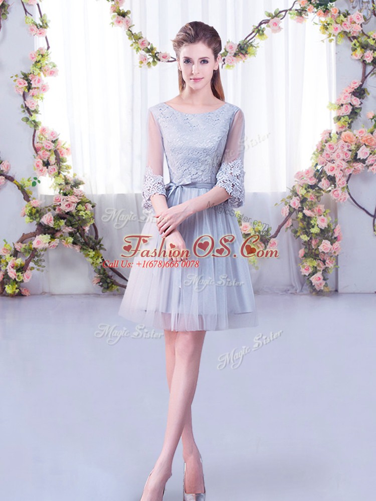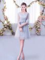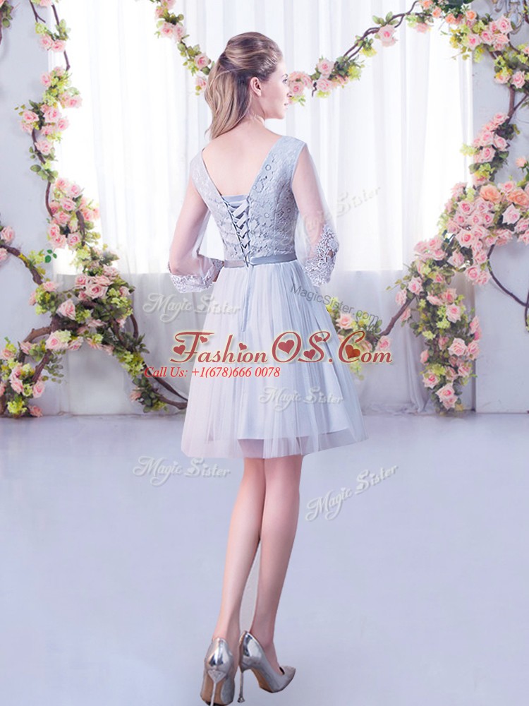 Fantastic Mini Length Empire Half Sleeves Grey Damas Dress Lace Up