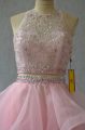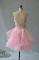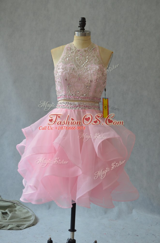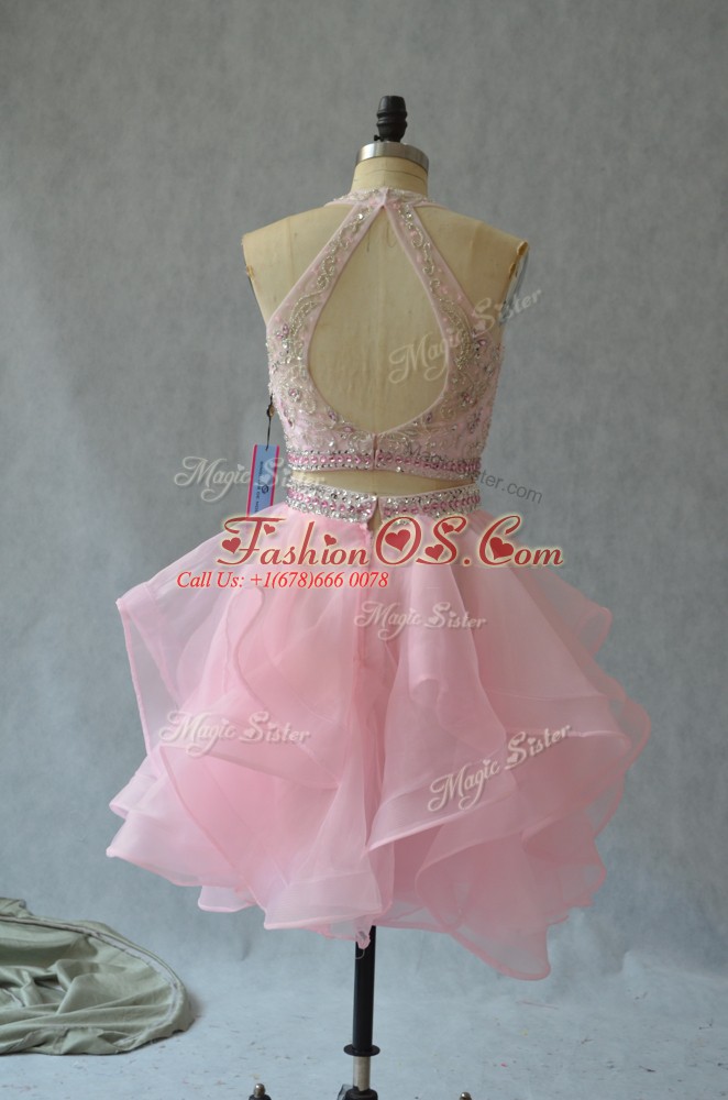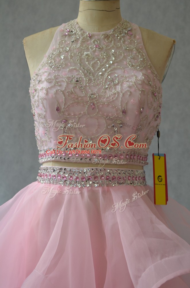 Fantastic Mini Length Two Pieces Sleeveless Baby Pink Prom Dresses Backless