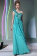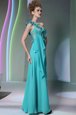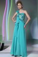 Home >  Prom Dresses >  Cheap Prom Dresses > Fantastic One Shoulder Sleeveless Floor Length Lace and Hand Made Flower Side Zipper Homecoming Dress with Teal