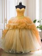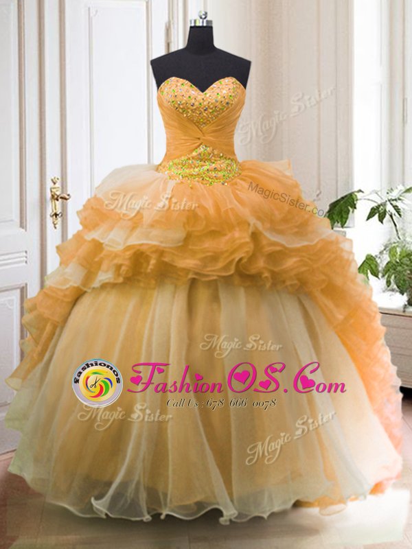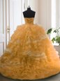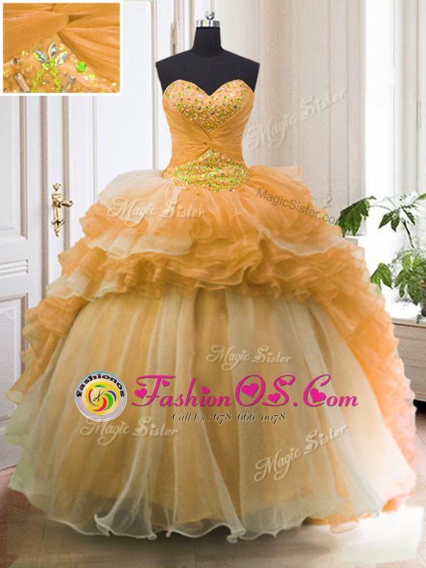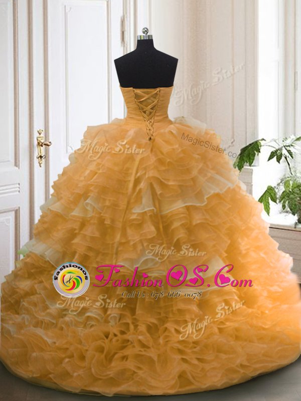 Fantastic Organza Sleeveless With Train Sweet 16 Dresses Sweep Train and Beading and Ruffled Layers