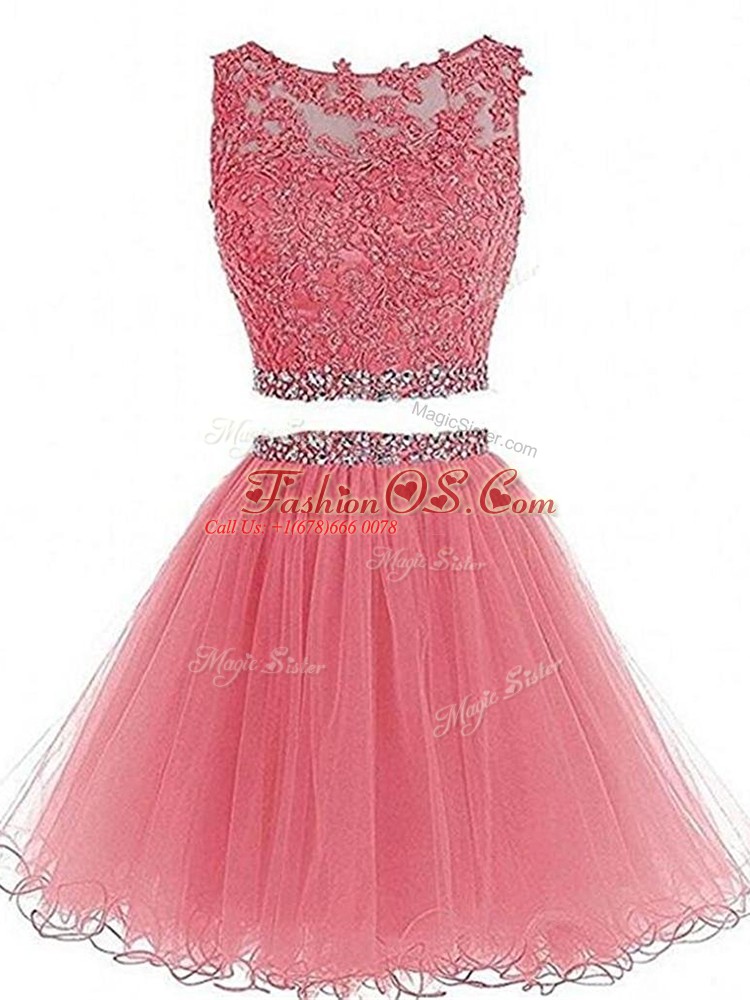 Fantastic Pink Scoop Neckline Beading and Lace and Appliques Party Dress Wholesale Sleeveless Zipper
