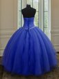 Fantastic Royal Blue Quince Ball Gowns Military Ball and Sweet 16 and Quinceanera and For with Beading and Belt Sweetheart Sleeveless Lace Up