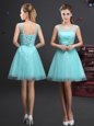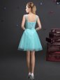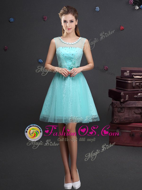 Fantastic Scoop Aqua Blue Lace Up Quinceanera Court of Honor Dress Beading and Lace and Appliques and Belt Sleeveless Mini Length