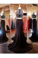 Home >  Prom Dresses >  Modest Prom Dresses > Fantastic Scoop With Train Zipper Prom Dress Black and In for Prom and Party with Beading and Appliques Brush Train