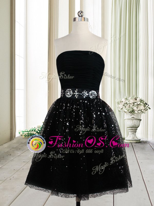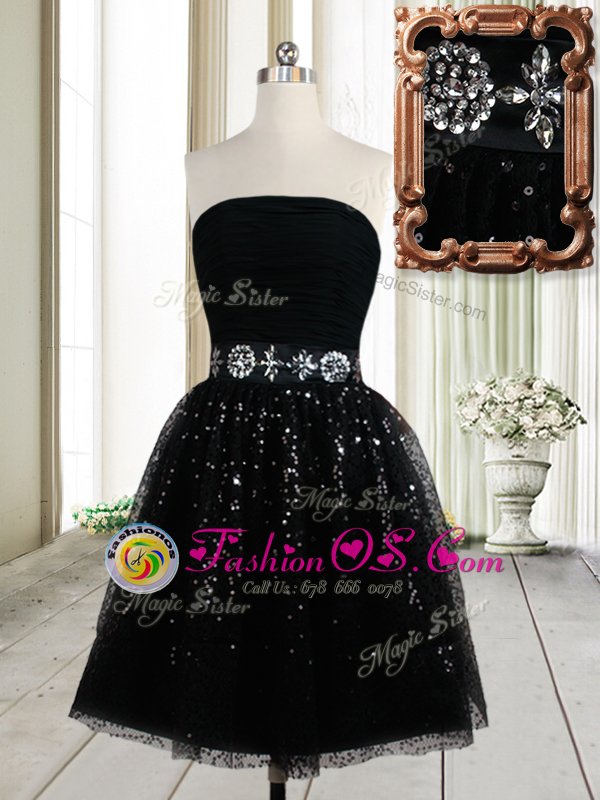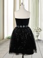 Fantastic Sequins Black Sleeveless Tulle Zipper Prom Party Dress for Prom and Party