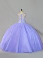 Fantastic Sleeveless Tulle Floor Length Zipper 15 Quinceanera Dress in Lavender with Sequins
