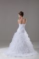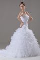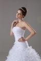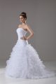 Fantastic Strapless Sleeveless Brush Train Lace Up Bridal Gown White Organza