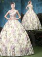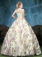 Fantastic Straps Multi-color Lace Up Vestidos de Quinceanera Appliques and Pattern Sleeveless Floor Length