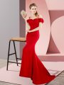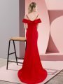 Fantastic Straps Sleeveless Sweep Train Lace Up Evening Dress Red Satin