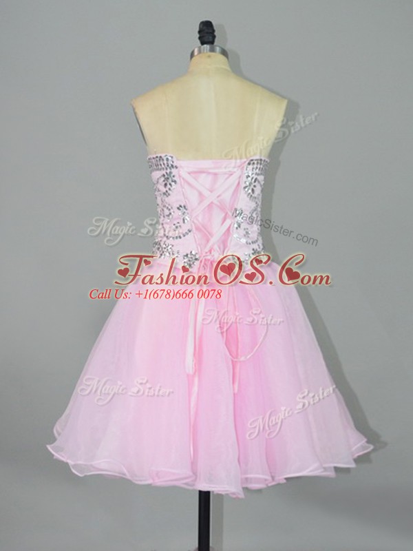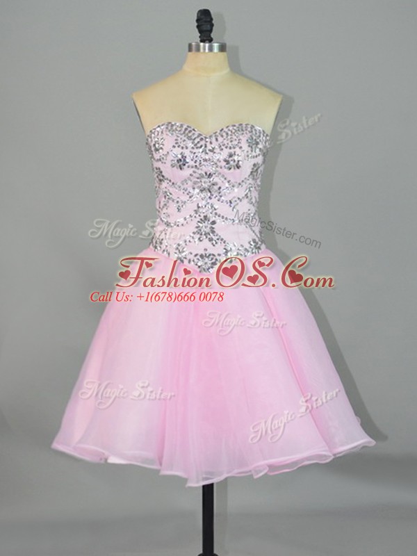 Fantastic Sweetheart Sleeveless Prom Party Dress Mini Length Beading Pink Organza