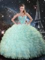 Fantastic Turquoise Sweetheart Lace Up Beading and Ruffles Quinceanera Dresses Sleeveless