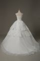 Fantastic White Lace Up Bridal Gown Beading and Lace and Bowknot Sleeveless Brush Train