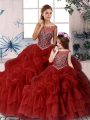 Fantastic Wine Red Ball Gowns Beading and Pick Ups Ball Gown Prom Dress Zipper Organza Sleeveless