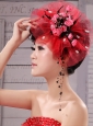 Fascinators Tulle Hand Made Flowers Outdoor and Special Occasion Red