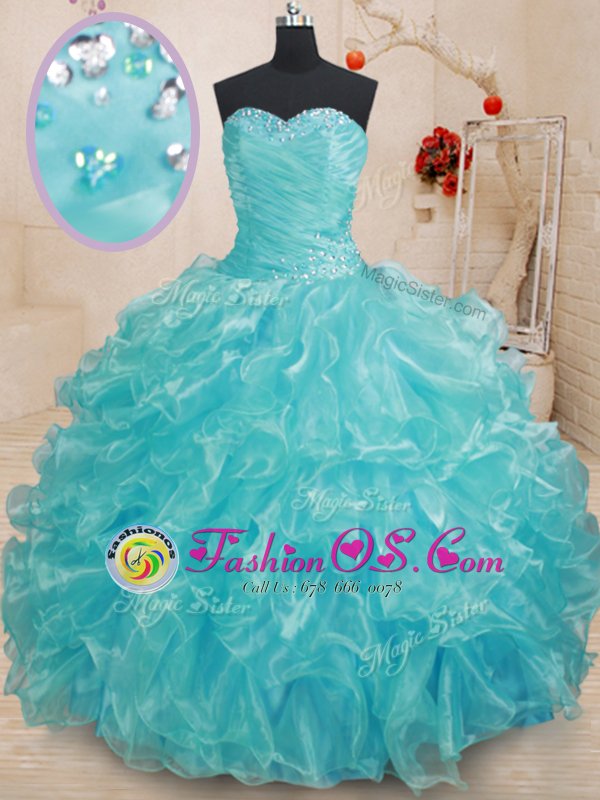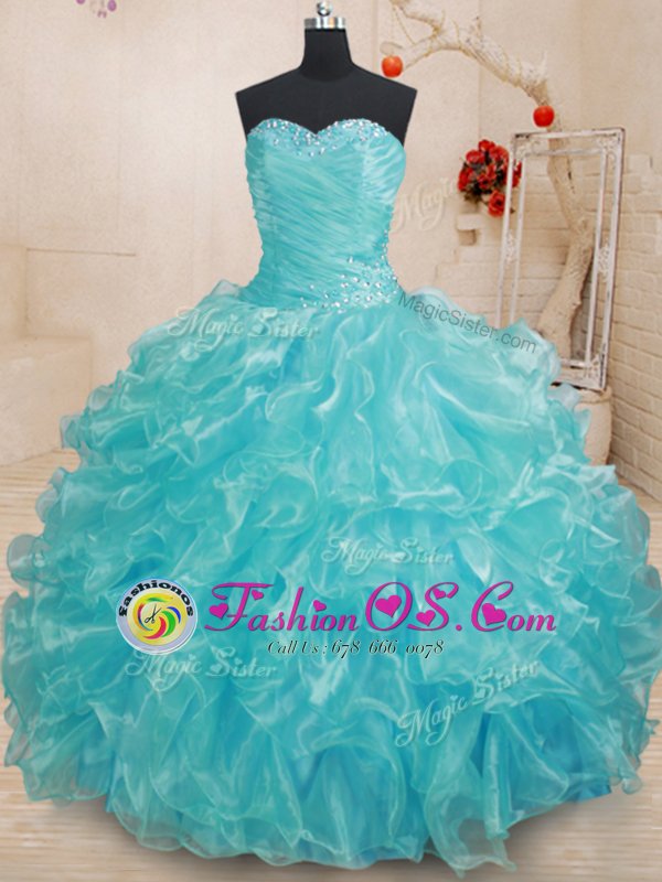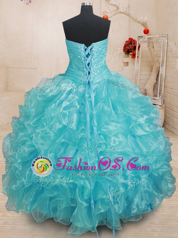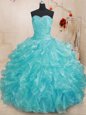 Fashion Aqua Blue Sweetheart Neckline Beading and Ruffles Quinceanera Dresses Sleeveless Lace Up