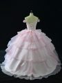 Fashion Ball Gowns Sleeveless Pink Vestidos de Quinceanera Brush Train Lace Up