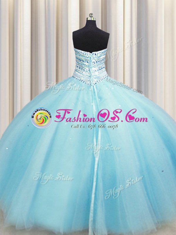 Home >  Quinceanera Dresses >  In Stock Quinceanera Dresses > Fashion Bling-bling Big Puffy Aqua Blue Sleeveless Tulle Lace Up Quinceanera Gowns for Military Ball and Sweet 16 and Quinceanera
