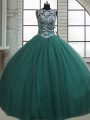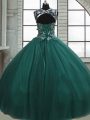 Fashion Dark Green 15th Birthday Dress Military Ball and Sweet 16 and Quinceanera with Beading Scoop Sleeveless Lace Up