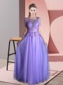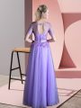 Fashion Floor Length Lavender Prom Evening Gown Tulle Short Sleeves Beading and Lace