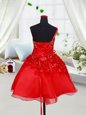 Fashion One Shoulder Sleeveless Organza Mini Length Lace Up Little Girls Pageant Dress in Red for with Sequins and Hand Made Flower