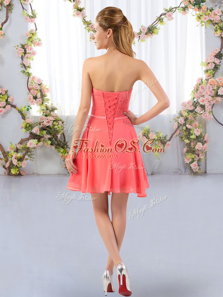 Fashion Orange Empire Chiffon Sweetheart Sleeveless Ruching Mini Length Lace Up Wedding Party Dress