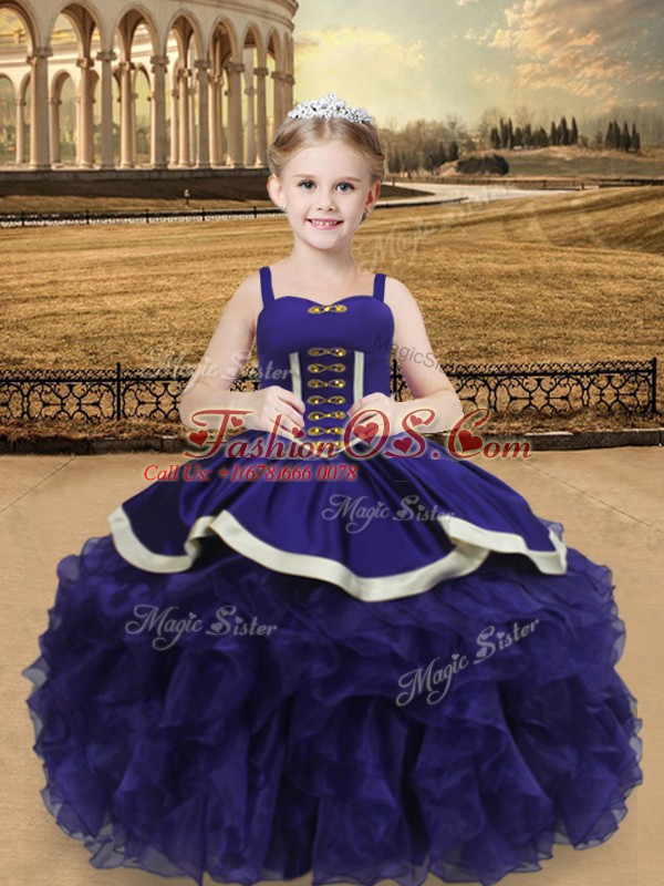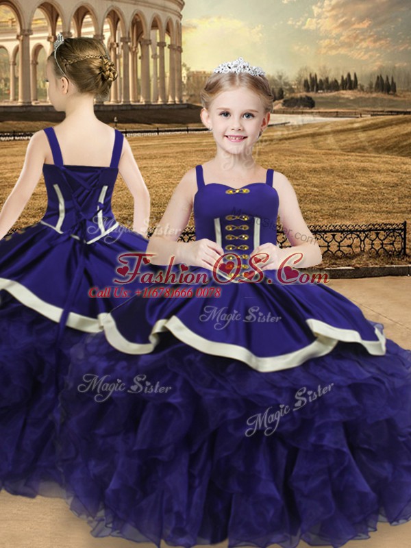Home >  Special Occasion Dresses >  Beautiful Kids Pageant Dresses > Fashion Organza Straps Sleeveless Lace Up Beading and Ruffles Pageant Dress for Teens in Purple