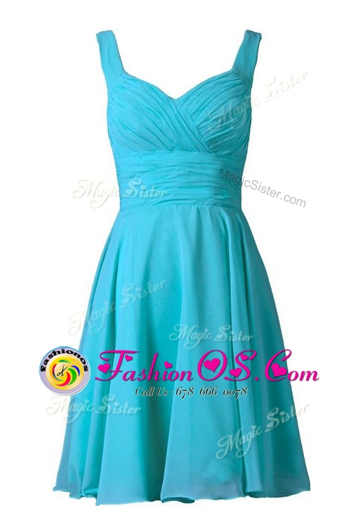 Home >  Special Occasion Dresses >  Homecoming Dresses > Fashion Pleated Off The Shoulder Sleeveless Zipper Turquoise Chiffon