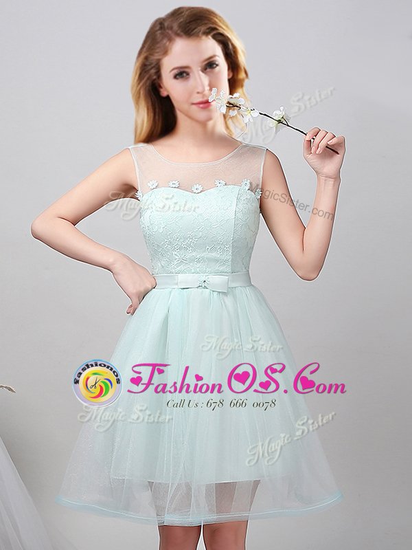 Fashion Scoop Apple Green Lace Up Quinceanera Court Dresses Lace and Appliques and Belt Sleeveless Mini Length