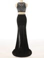 Fashion Scoop Sleeveless Homecoming Dress With Brush Train Beading Black Chiffon