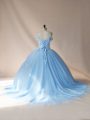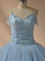 Fashion Sleeveless Brush Train Beading Lace Up Vestidos de Quinceanera