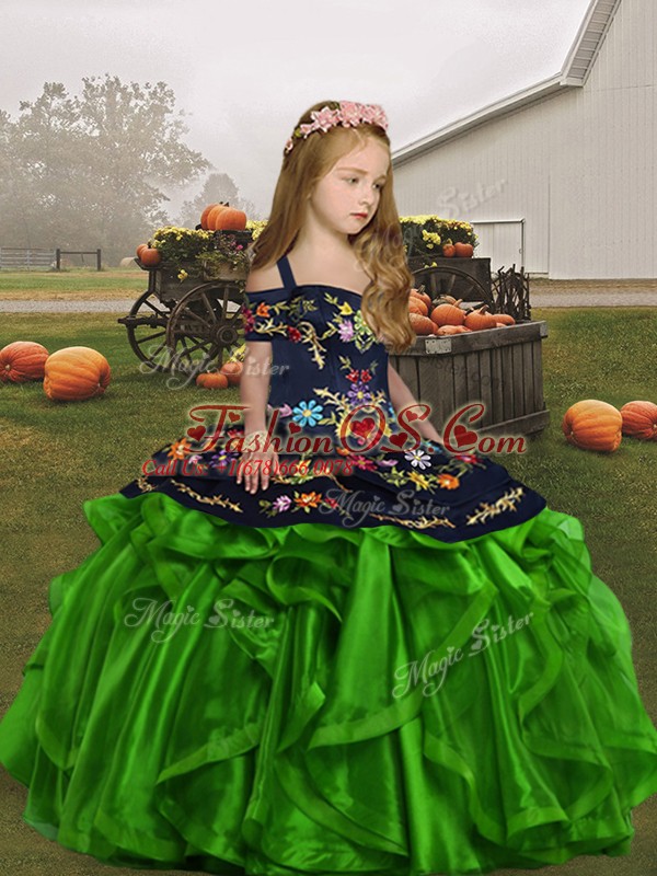 Fashion Sleeveless Embroidery and Ruffles Lace Up Pageant Gowns For Girls